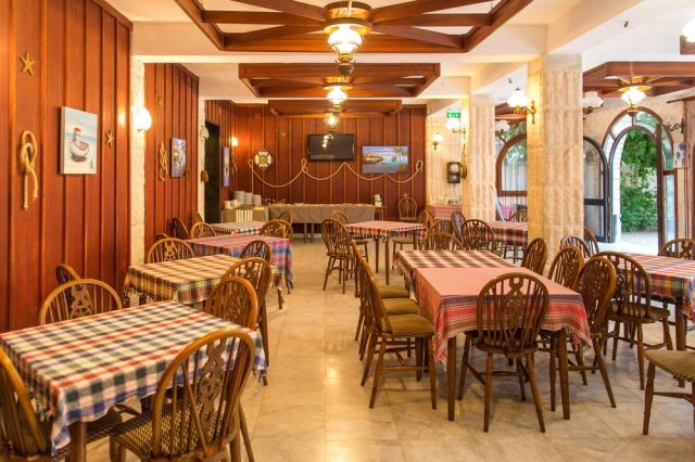 Рестораны и бары:основной ресторан (64 посадочных места внутри, 60 на террасе; завтраки с 07:00 до 10:00 шведский стол, ужины: с 18:00 до 21:00 a la carte); аперитив-бар: с 07:00 до 23:00