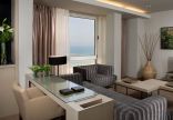 Presidential Suite (130 м2): номер расположен на 5 этаже; просторная спальня и ванная комната, большая гостиная, длинная терраса с видом на море, джакузи, кофемашина; максимальное размещение 3 человека
