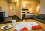 В номере:ванная комната, фен, мини-холодильник, кухонный уголок (микроволновая печь, столовые приборы), набор для приготовления кофе/чая, рабочий стол, зона отдыха, кондиционер, кабельное ТВ, сейф, телефон, звонок " будильник"