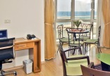 Suite: двухкомнатный номер-люкс с 2 ванными комнатами, вид на Средиземное море; две спальни - одна спальня с двуспальной кроватью, вторая спальня с двойным раскладным диван-кроватью, она также может быть использована в качестве офиса; в гостиной имеется двуспальная кровать диван; максимальное размещение 5 взр.