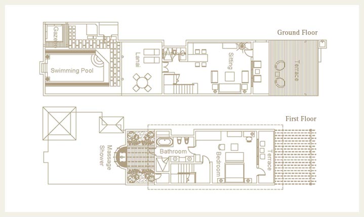 Family Villa with Pool (306 м2): отдельно стоящие двухэтажные виллы; спальня на втором этаже с видом на пляж и океан; на этом же этаже находятся: гардеробная, ванная комната со стеклянной душевой кабиной и отделанной мрамором ванной в центре; просторная гостиная на первом этаже ведет на веранду, выходящую к пляжу и лагуне, а в огороженном внутреннем дворике располагается персональный бассейн; кофемашина Nespresso, DVD-плеер, завтрак в ресторане Thila, услуги дворецкого; Максимальное размещение - 2 взрослых и 2 детей или 3 взрослых (схема номера)