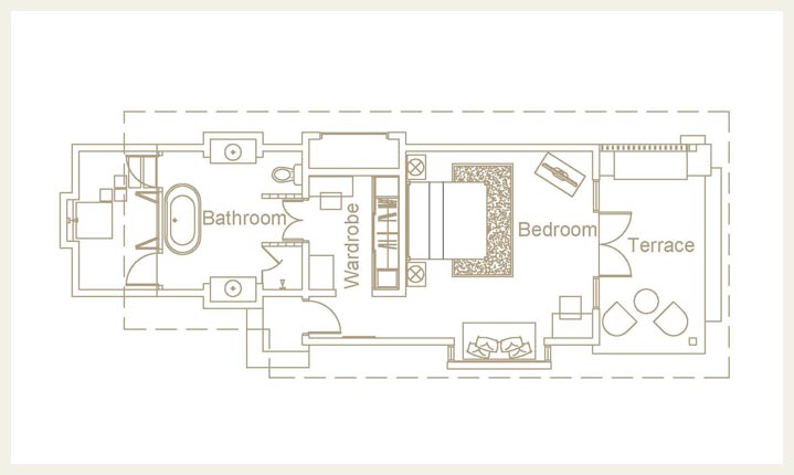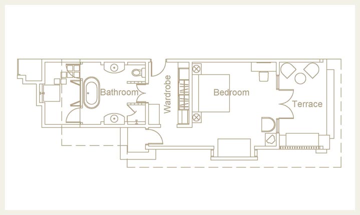 Beach Villa (103 м2) вилла на берегу, отдельно стоящие, просторная спальня, которая соединяется с гостиной и верандой, расположенной в нескольких шагах от лагуны, большая ванная комната с ванной и стеклянной душевой кабиной, патио с традиционным тростниковым навесом и тропическим душем под открытым небом, джакузи в саду, кофемашина Nespresso, DVD-плеер, завтрак в ресторане Thila; Максимальное размещение: 2 взрослых и 2 детей или 3 взрослых и ребенок  (схема номера)