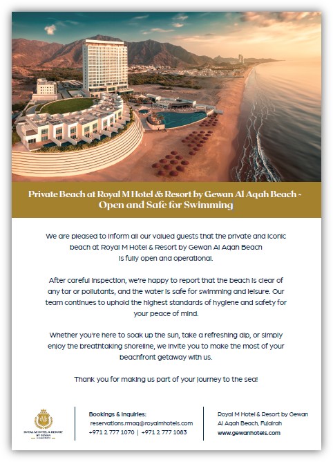 02.05.2024. Отель Royal M Hotel & Resort Al Aqah изменил название на Royal M by Gewan Hotel & Resort Al Aqah.
