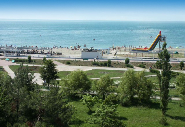 собственный оборудованный галечный пляж, 600 м от санатория; навесы, зонтики, шезлонги, кабинки для переодевания, медпункт