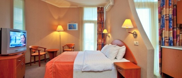 Suite: две односпальные кровати, тумбочки, стол, шкаф, телефон, фен, доп. место – детская раскладушка для ребенка до 12 лет включительно