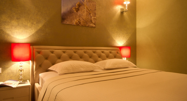 Apartment Deluxe: двухкомнатный номер, двуспальная кровать и диван; есть терраса с мебелью, вид - на море. Номер оборудован всей необходимой техникой и мебелью. Также есть кухонный уголок; максимальное размещение 4 взр.