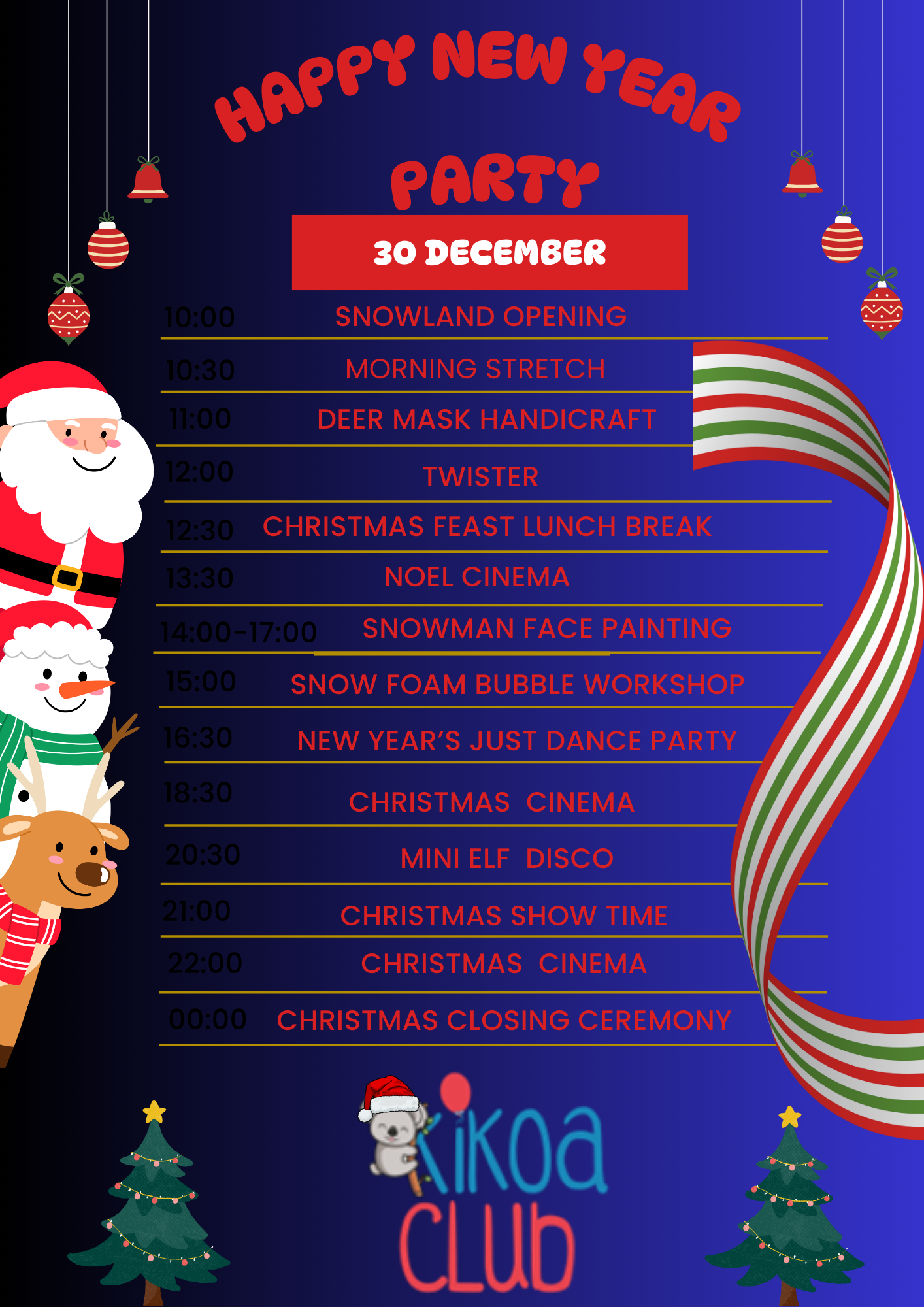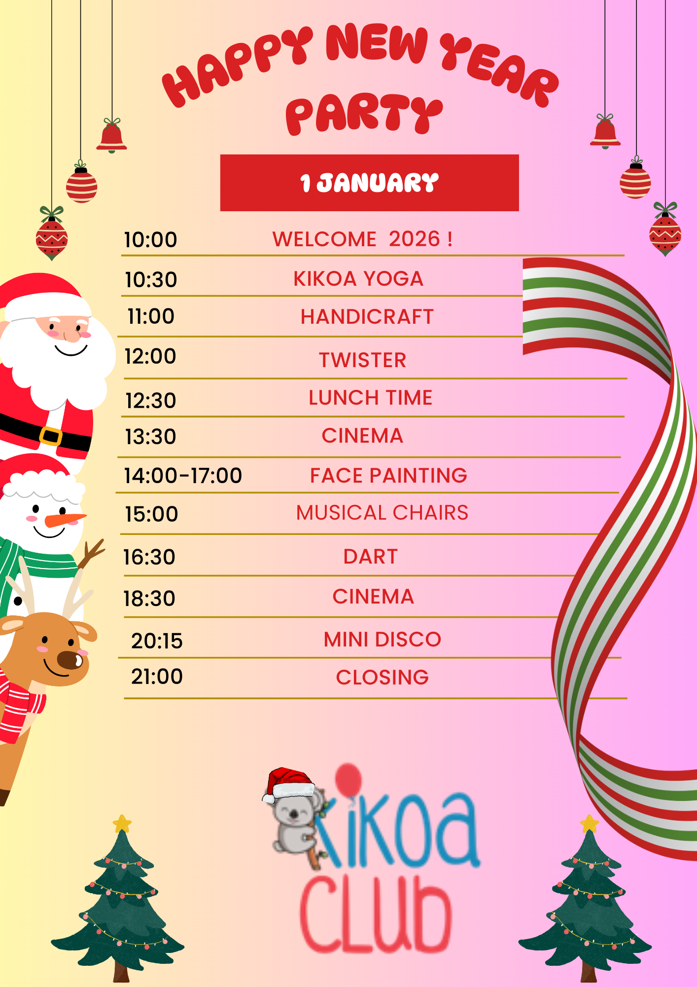 29.11.2025. Новогодняя программа 2025-2026 в детском клубе Kikoa Mini Club: 29 декабря (афиша), 30 декабря (афиша), 31 декабря (афиша), 01 января (афиша).