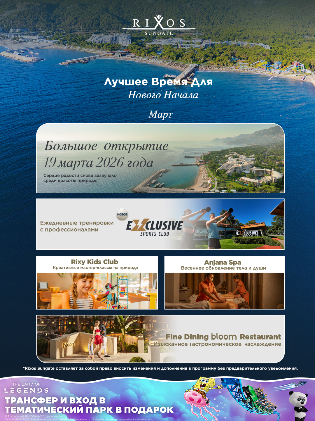 Для гостей Club Diamond отеля Rixos Sungate 5* (Кемер).