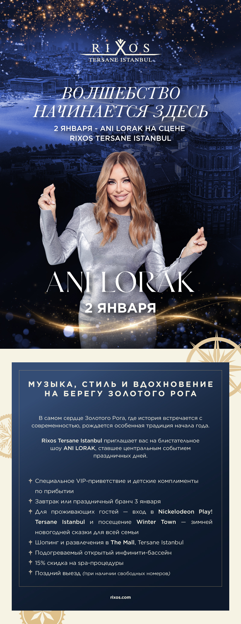 18.11.2025. Новогодняя программа 2025-2026: Ani Lorak - 02 января 2026 г. (афиша) и Polina Gagarina - 06 января 2026 г. (афиша).