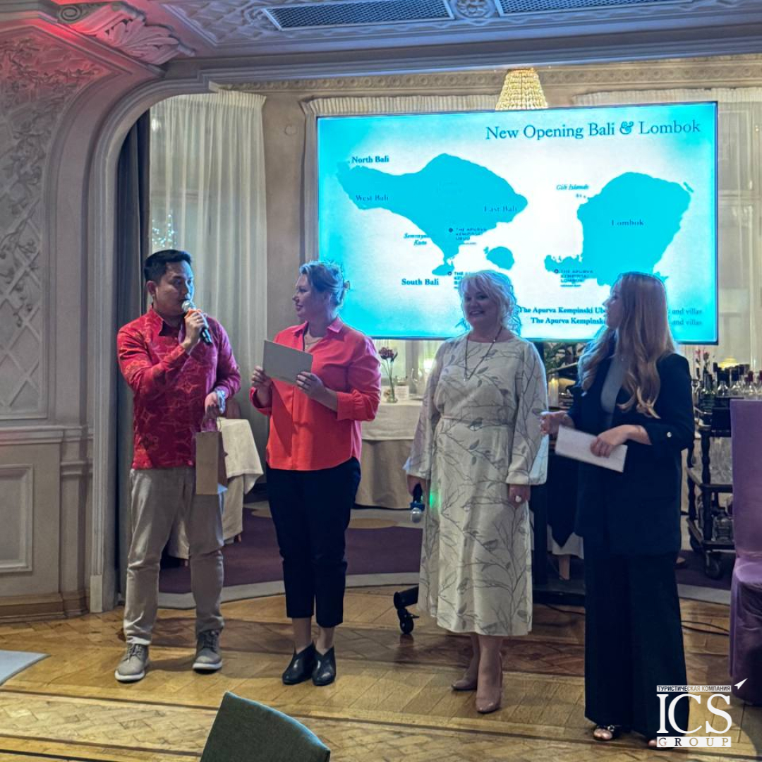 Бизнес-ужин в Санкт-Петербурге «Индонезия вместе с ICS» при участии отелей острова Бали и принимающей компании Pegasus Indonesia Travel15 сентября в Санкт-Петербурге прошел бизнес-ужин, посвященный направлению Индонезия. В программе вечера прошли презентации о компаниях ICS Travel Group и Pegasus Indonesia Travel, а также презентации отелей-партнеров: Paradisus By Melia Bali Double Six Luxury Hotel
