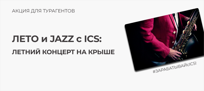 Реклама. ООО «АЙ СИ ЭС ГРУПП», erid: 2SDnjcsbGop Лето и Jazz с ICS: концерт «100 лет джаза» на летней крышеУзнайте, как менялся джаз на протяжении столетия, под живую музыку и романтику заката! ICS Travel Group приглашает турагентов-лидеров продаж на летний концерт на крыше. Оркестр Cool Groove Small Band исполнит джазовые композиции разных эпох. Вы услышите музыку от регтайма 1930-х до джаз-рока, блюза и фанка. В программе — хиты Луи Армстронга, Фрэнка Синатры, Бенни Гудмена и Джона Колтрейна. Каждая мелодия расскажет историю, наполненную волшебством и эмоциями. Концерт пройдет 31 июля. Для участия, необходимо: → совершить одно или несколько бронирований на сумму от 250 000 ₽ по одному из направлений (Турция, ОАЭ, Оман, Катар, Иордания, Китай, Индонезия, Вьетнам, Таиланд, Япония, Мальдивы, Маврикий, Сейшелы, Куба) и получить шанс участвовать в мероприятии. Участники, показавшие наилучшие результаты по обороту, получат билет на концерт. Условия акции: | — | Даты бронирования: 01.07.2025 - 28.07.2025. | — | Даты проживания: 01.07.2025 - 31.12.2025. | — | В акции участвуют пакетные туры с перелетом из любого города вылета, бронирование только отеля (без перелета), а также FIT-туры. | — | Акция не распространяется на дополнительные услуги, групповые заявки от 10 человек и рекламные туры. | — | В зачет идут только полностью оплаченные заявки c общей суммой к оплате от 250 000 ₽ по направлениям Турция, ОАЭ, Оман, Катар, Иордания, Китай, Индонезия, Вьетнам, Таиланд, Япония, Мальдивы, Маврикий, Сейшелы, Куба. Участники, показавшие наилучшие результаты по обороту, получат билет на концерт. | — | Акция распространяется на все агентства, работающие на прямом договоре c ICS Travel Group (онлайн площадки, ЕРЦ и ЦБ не принимают участия в акции). | — | Билет на концерт не обменивается на денежный эквивалент и предназначен только для действующих турагентов. Турагент может получить только один билет на концерт. | — | Туроператор оставляет за собой право вносить изменения в условия акции или досрочно прекратить проведение акции. |